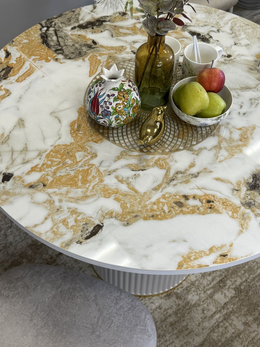 5. Стол KENNER LD1000 белый-керамика мрамор золотой глянец