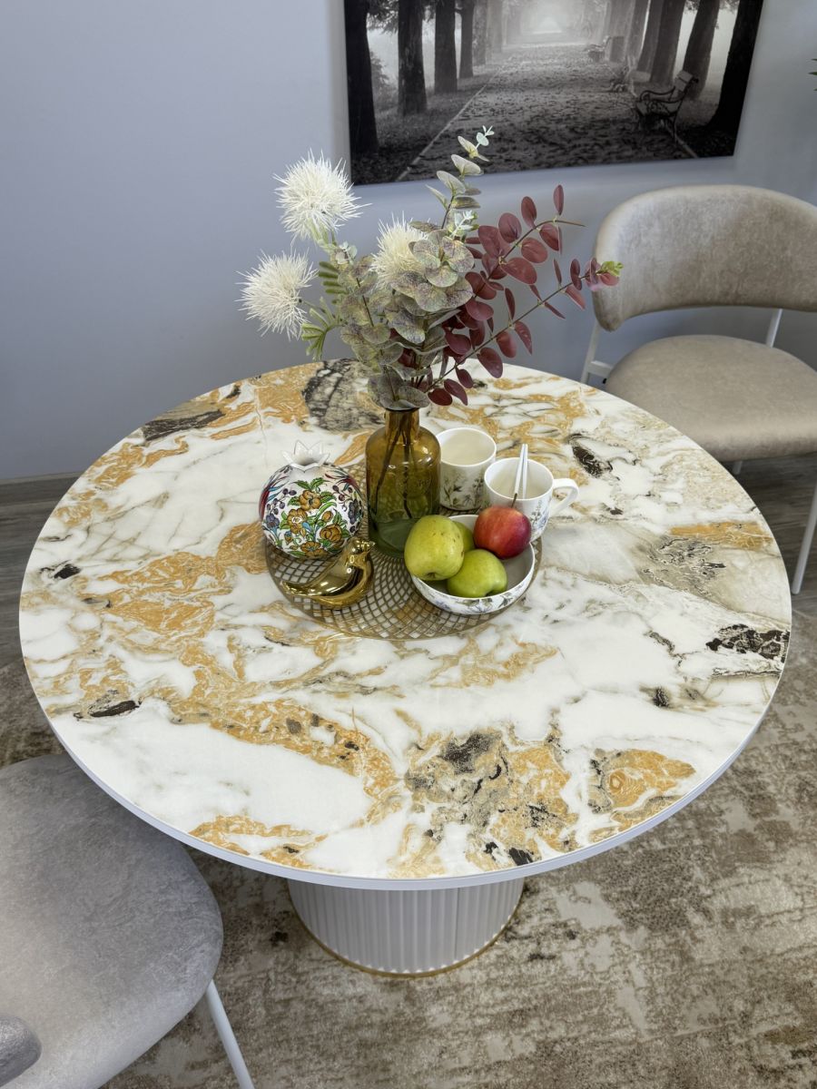 Стол KENNER LD1000 белый-керамика мрамор золотой глянец