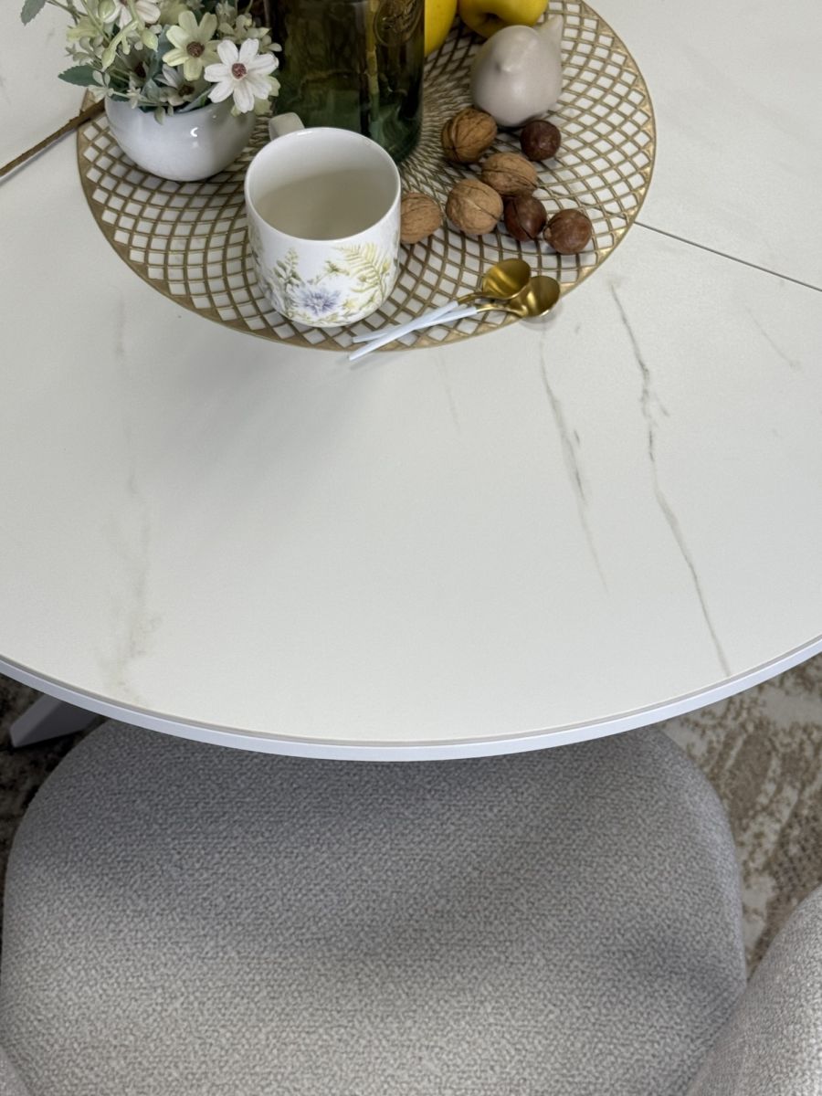 Ключевой особенностью этого стола является керамическая поверхность диаметром 90 см и долговечным, стабильным основанием. Дополняет комплект вставка на 30 см, расширяющая площадь стола.ОСНОВНЫЕ ПРЕИМУЩЕСТВА Стол сконструирован так, чтобы идеально подходить семье из трех-четырех человек. Керамическая столешница устойчива к воздействию различных домашних неприятностей. Благодаря керамической вставке есть возможность увеличивать размер стола при необходимости. Столешница премиум-класса Керамическая продукция толщиной 5,6 мм отличается высокой стойкостью к царапинам, способна выдержать экстремально высокие температуры, обладает водоотталкивающими свойствами и устойчивостью к воздействию бытовой химии, а также сохраняет свой первоначальный цвет на протяжении всего срока эксплуатации. Высокая надежность материалов Центральное основание спроектировано так, чтобы не создавать помех при посадке. Столешница надежно закреплена и обеспечивает стабильность конструкции.