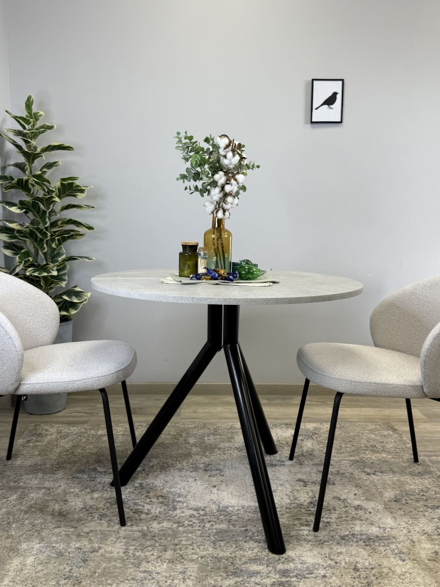 Стол с тремя оригинальными опорами, которые оставляют максимум места для ног и позволяют ставить широкие стулья. Столешница - ЛДСП Egger Premium 2024 с необыкновенно реалистичной и приятной на ощупь текстурой. Мягкая, бархатистая поверхность с низкой степенью блеска Цвет черный/мрамор светло-серый Гарантия 24 месяца.