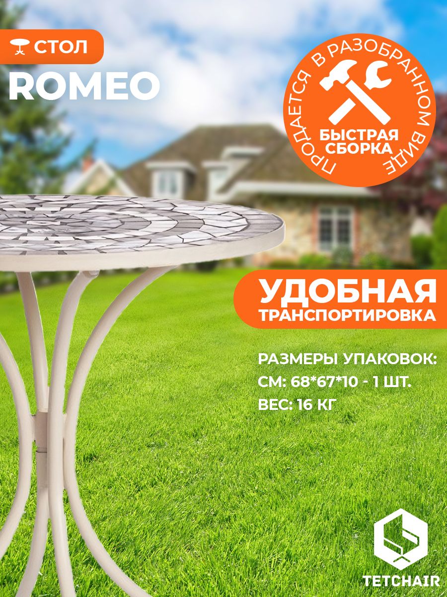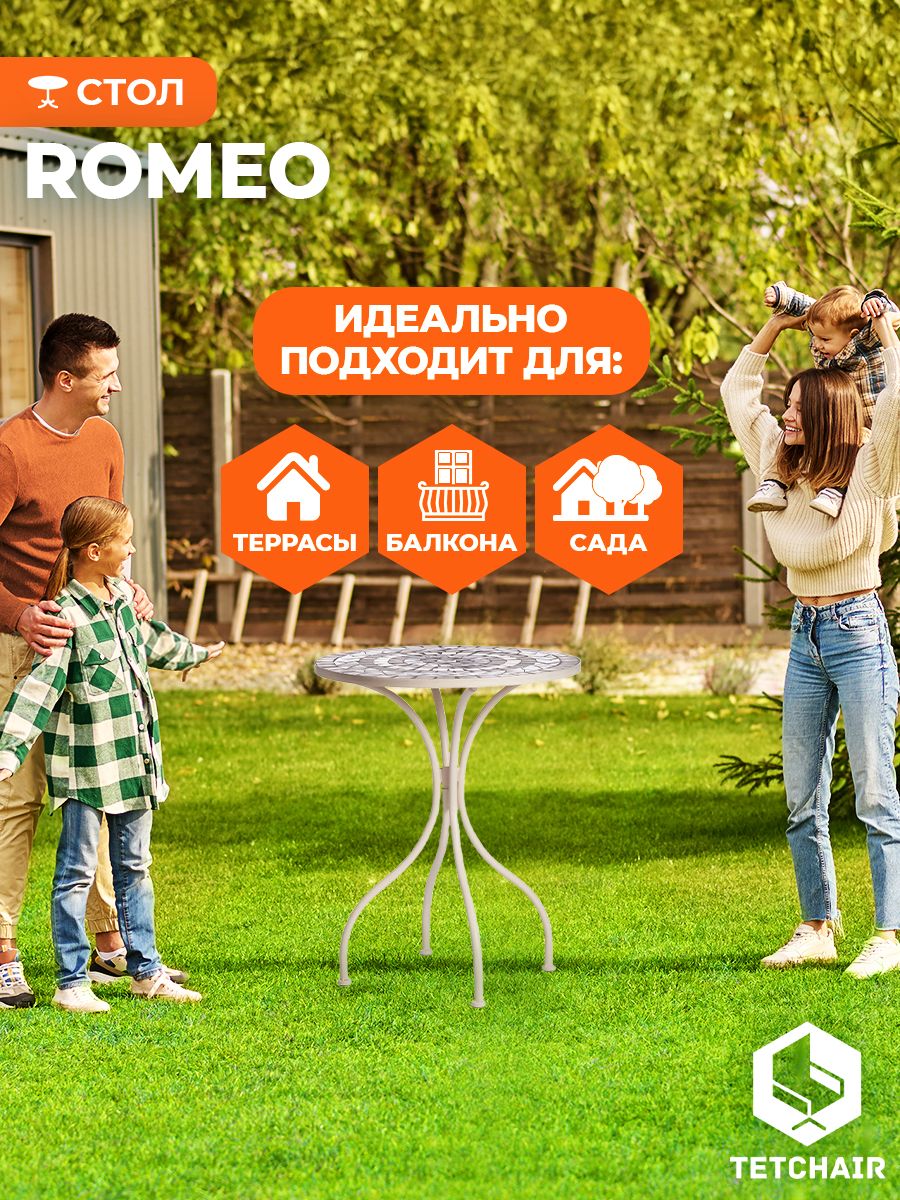 металл, 60*72см, белый/плитка quot;калейдоскопquot; Изящная форма и изысканный дизайн компактного столика Secret De Maison ROMEO из коллекции BEAUJOLAIS не только выгодно выделяют его в интерьере, но и помогут создать гармоничное пространство на загородной веранде, городском балконе или приусадебном участке. Столешница, декорированная оригинальным винтажным орнаментом из мозаики, и прочный каркас, изготовленный из стального сплава с напылением краски, выглядят дорого, элегантно, добавят ноты изысканности и индивидуальности в ваш интерьер. Удобные размеры и простота конструкции позволяют использовать столик ROMEO, как по прямому назначению, так и в качестве дополнительной сервировочной поверхности. Модель практична, надежна, устойчива к воздействию влаги, температурным перепадам и проста в уходе. Прекрасно сочетается с мебелью из коллекции BEAUJOLAIS, поставляется в разобранном виде.