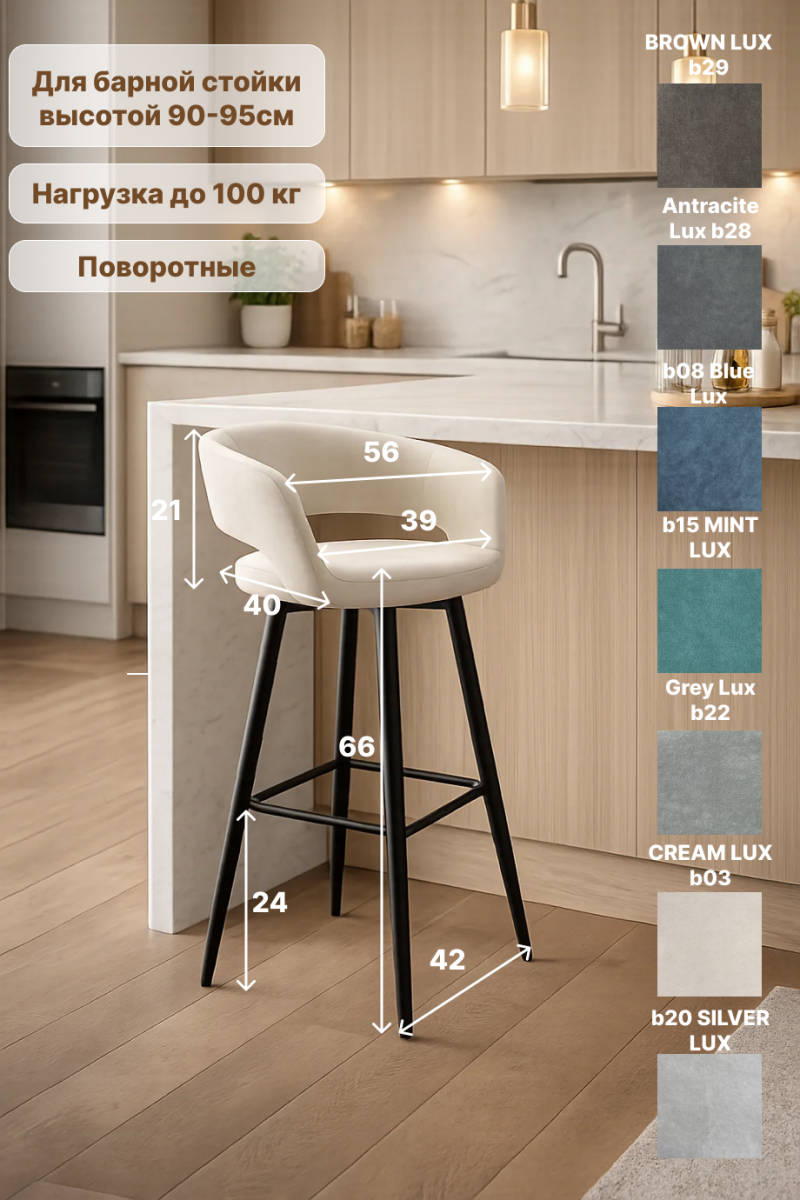 Комплект 2 шт. Барные стулья идеально впишутся в обстановку вашей комнаты и станут неотъемлемой частью интерьера! Барный стул - это идеальное решение для создания комфортного пространства в вашем доме или на даче. Он станет прекрасным дополнением для вашей гостиной, спальни, лофта или кухни, добавляя нотку элегантности в интерьер. Барный стул имеет эргономичный дизайн с подлокотниками, обеспечивающими максимальный комфорт во время отдыха и релаксации. Четыре стильные ножки придают ему современный вид, а также обеспечивают прочность и стабильность. Оно также идеально подойдет для спальни, где вы сможете насладиться уютом и расслаблением перед сном. Не забывайте, что такое универсальное кресло будет прекрасно смотреться и на вашей даче, становясь незаменимым аксессуаром для отдыха на свежем воздухе.