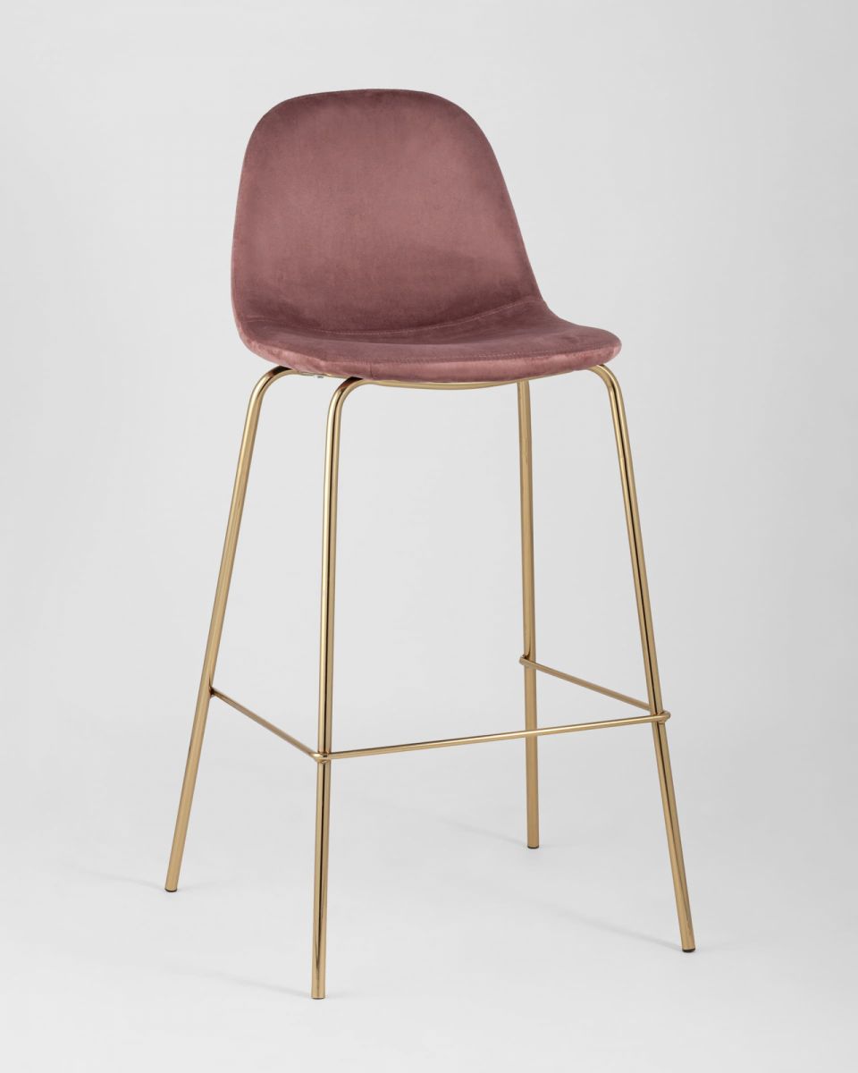 Стул барный Валенсия велюр пыльно-розовый золотые ножки