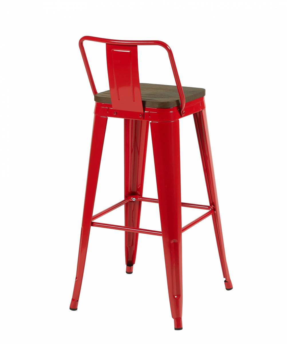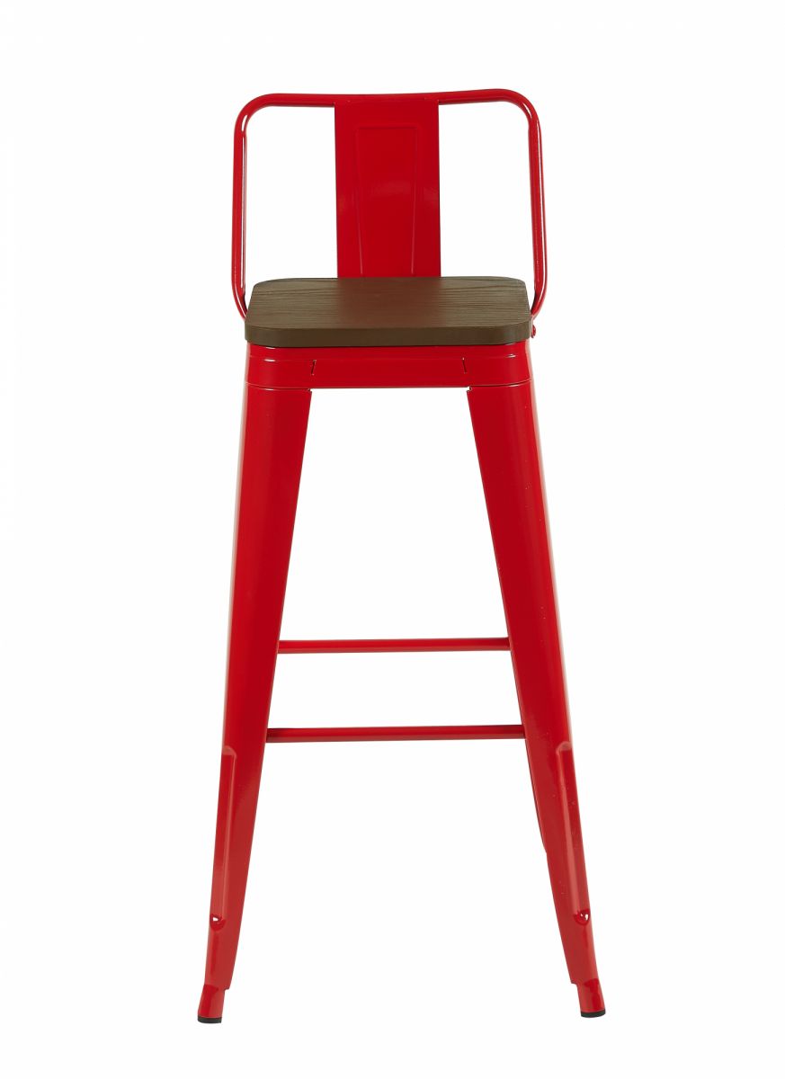 Стул барный TOLIX со спинкой красный глянцевый + темное дерево KD