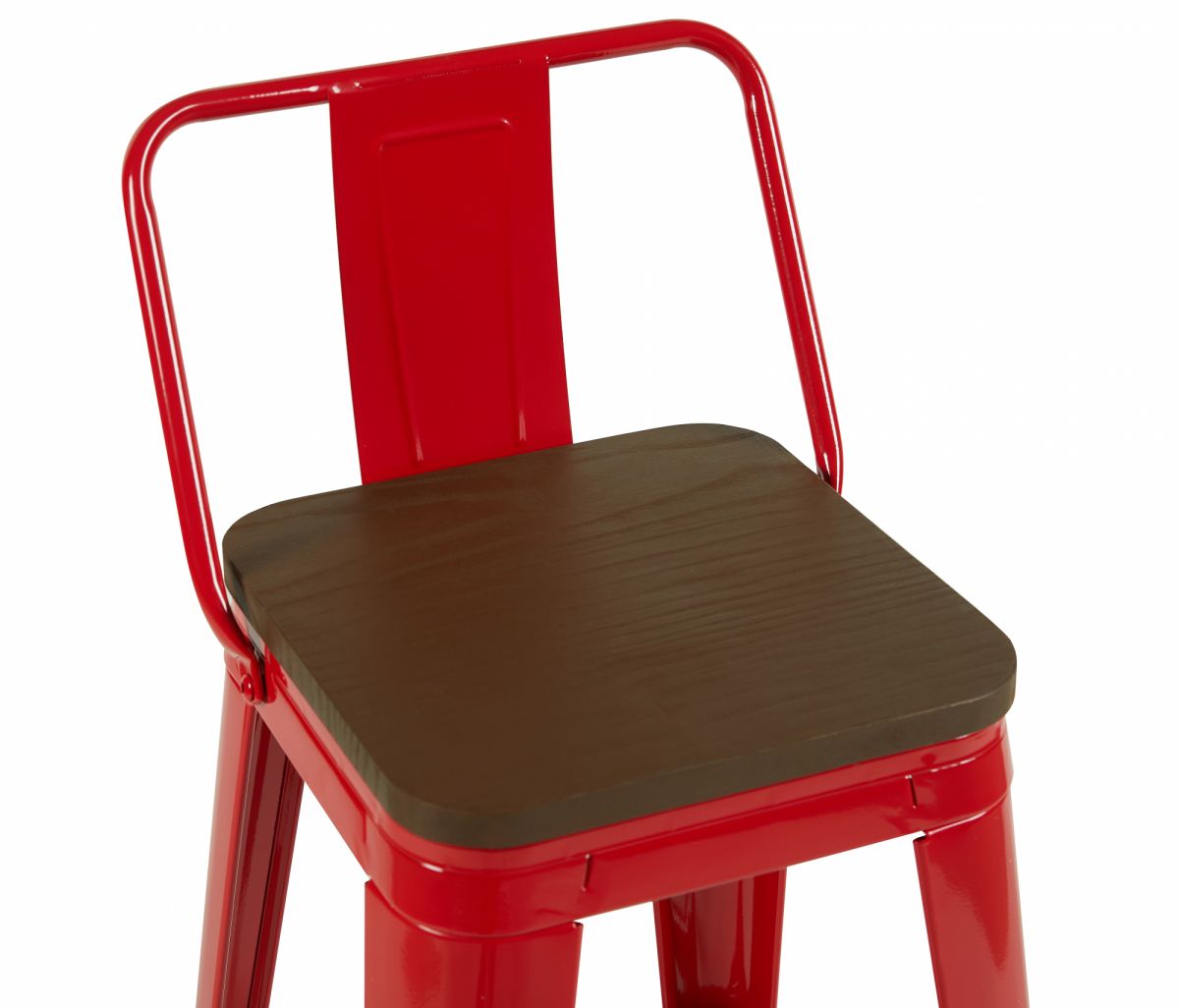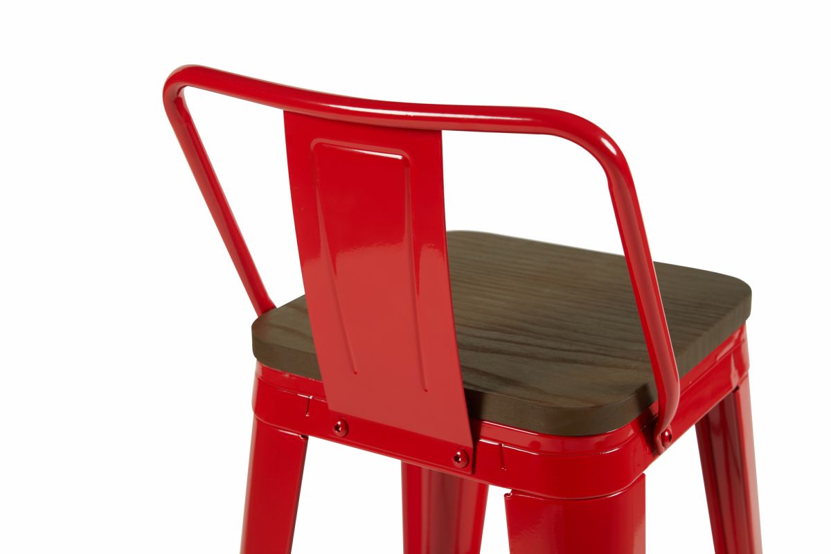 5. Стул барный TOLIX со спинкой красный глянцевый + темное дерево KD