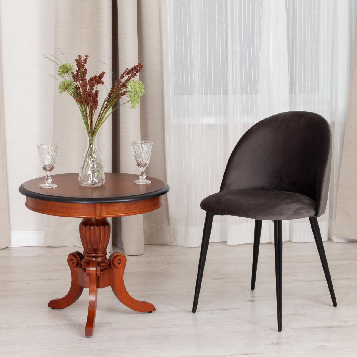 ткань/металл, 56х51х80 см, высота до сиденья 47 см, темно-серый barkhat 14/черный Приятные округлые формы стула MONRO, напоминающие стиль модерн середины двадцатого века, не теряют своей актуальности. Принципы эргономики и лаконичности ярко прослеживаются в дизайне стула. Удобные и обволакивающие формы спинки и сиденья обеспечат комфорт на протяжении длительного времени. Тканевая обивка темно-серого цвета выглядит дорого, стильно, элегантно. Ее приятная на ощупь поверхность притягивает к себе мягкостью и изысканной красотой. Прочные металлические ножки делают модель крепкой и основательной. Ткань обивки обладает повышенной износостойкостью, способна на долгие годы сохранить свой первоначальный цвет, не протираясь и не выцветая. Стул можно расположить в гостиной, кухне или столовой. Он хорошо подойдет для обстановки городской квартиры, загородного дома, кафе или ресторана.