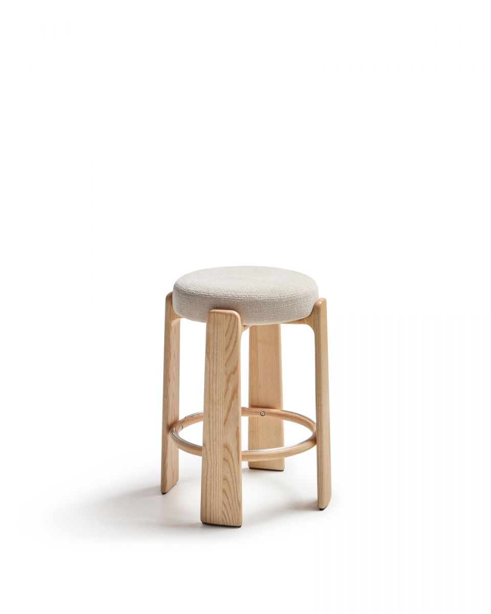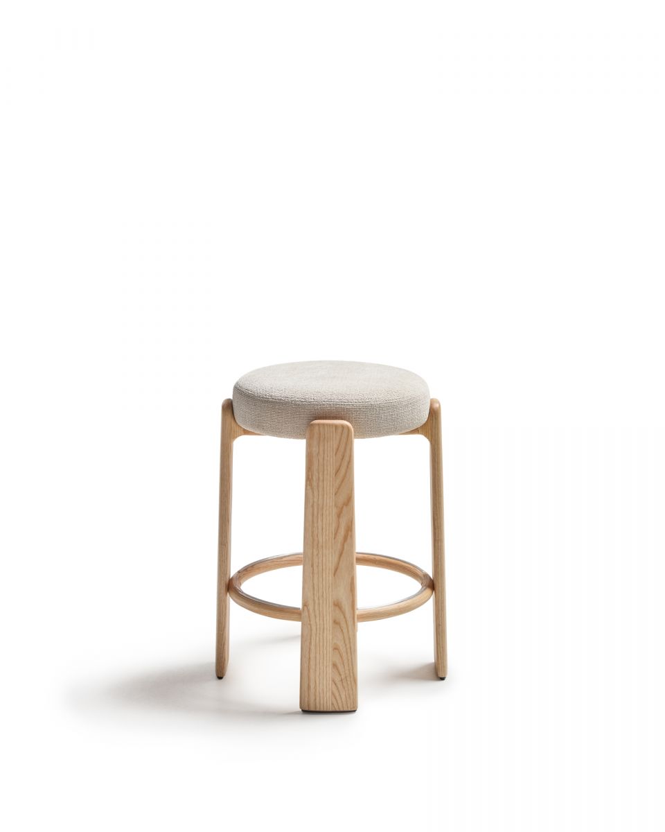 • Granite Полубарный табурет из бежевого шенилла и массива ясеня в натуральной отделке 65 см - 3