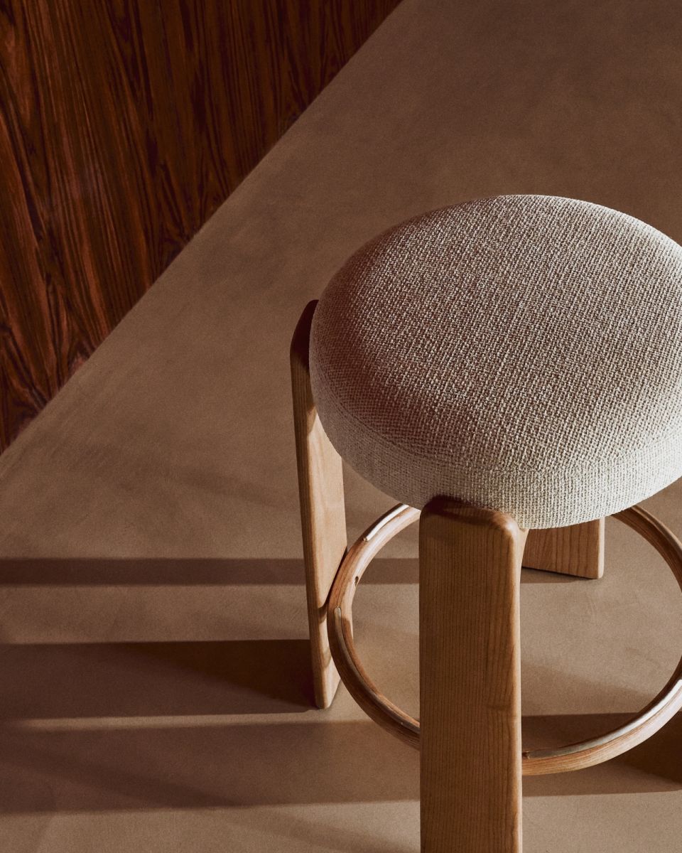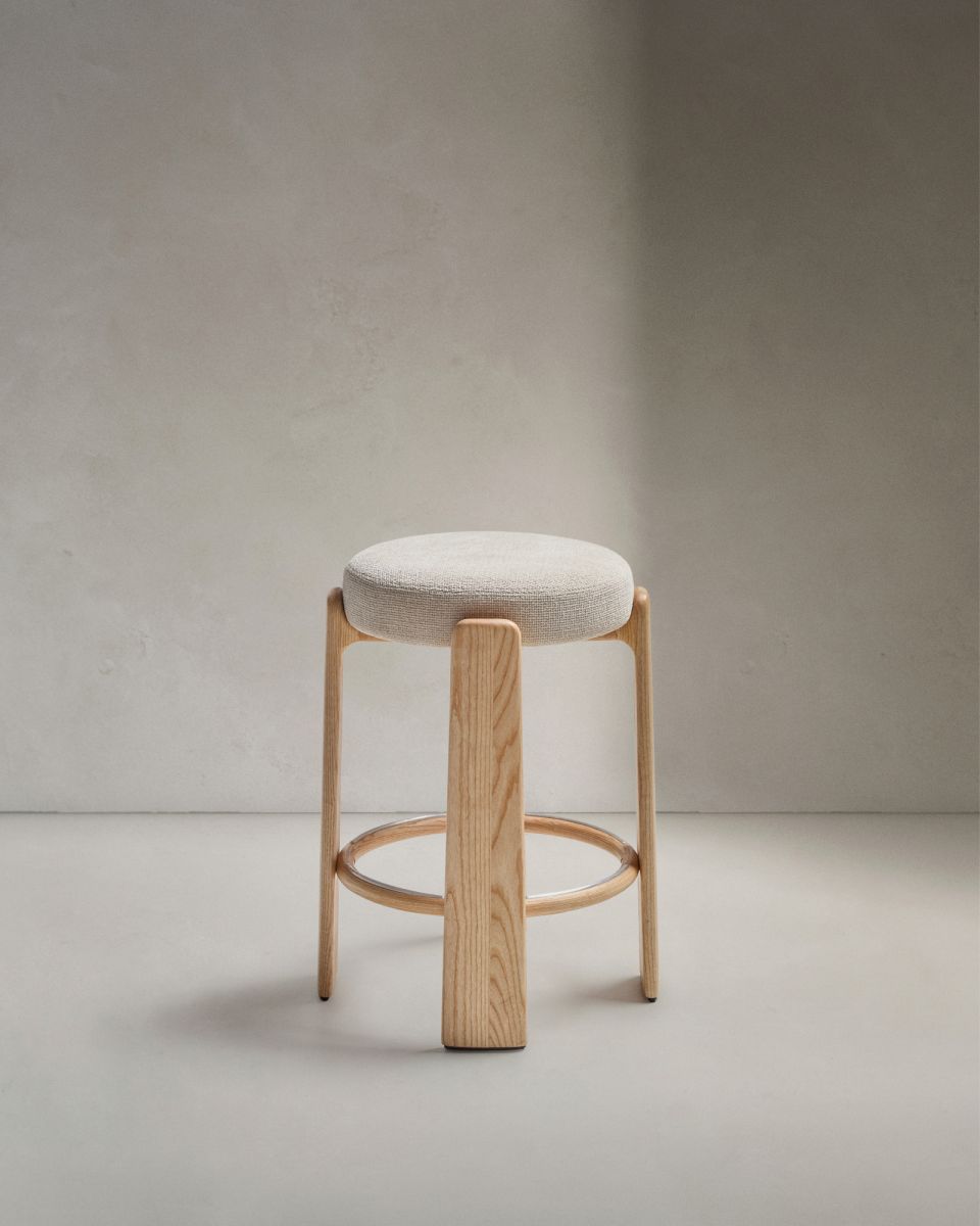 6. Granite Полубарный табурет из бежевого шенилла и массива ясеня в натуральной отделке 65 см