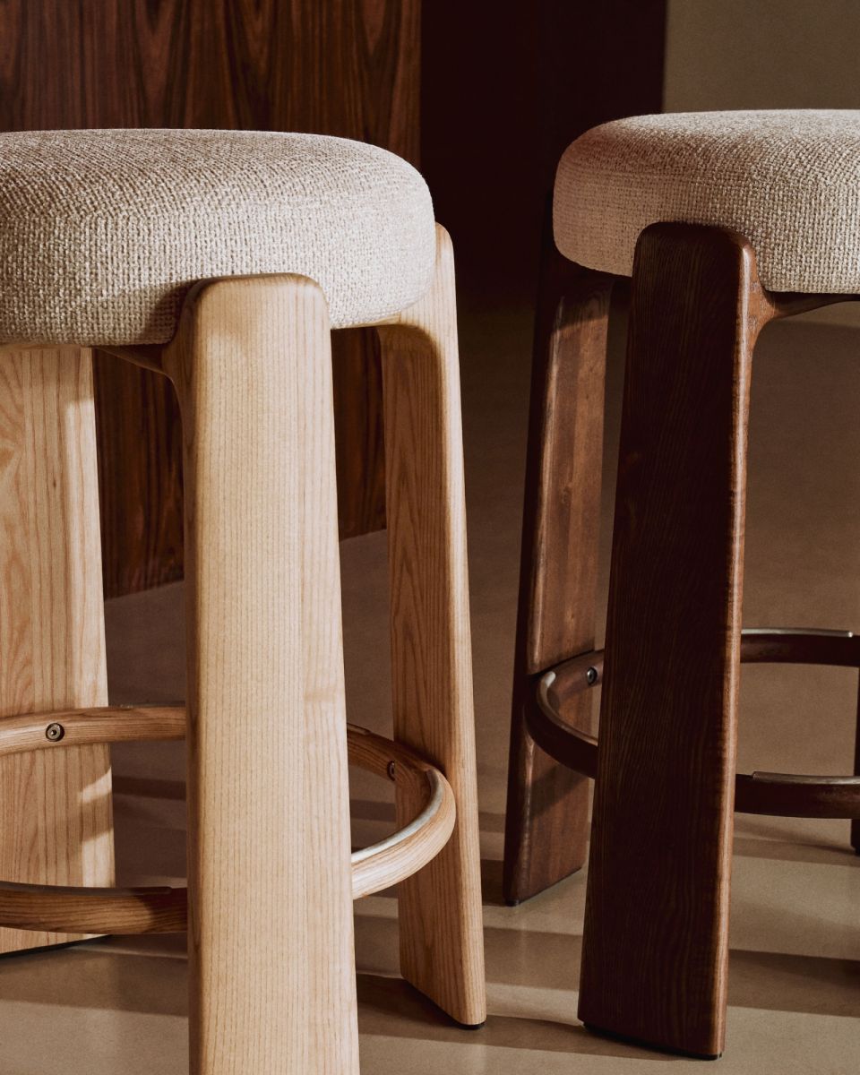 • Granite Полубарный табурет из бежевого шенилла и массива ясеня в натуральной отделке 65 см - 2
