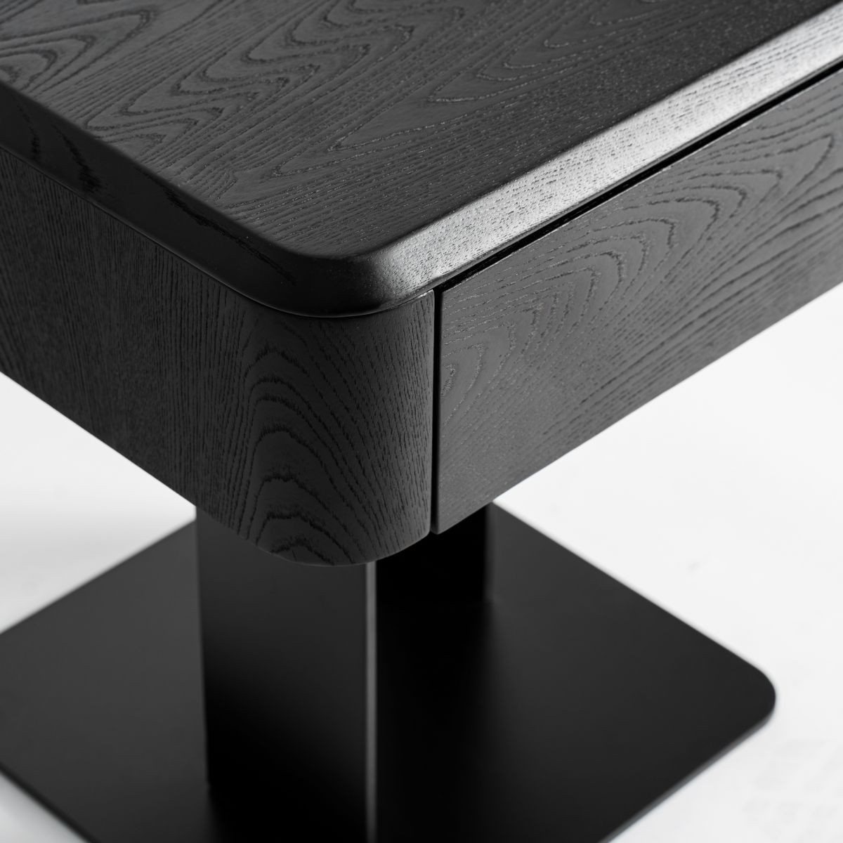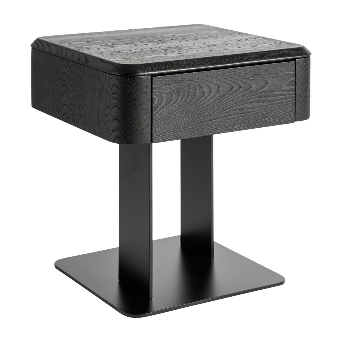Прикроватная тумбочка Caiza в современном стиле, изготовлена из черного МДФ в сочетании со шпоном черного вяза и черным железом.Ширина: 46 см, Глубина: 46 см, Высота: 51 см