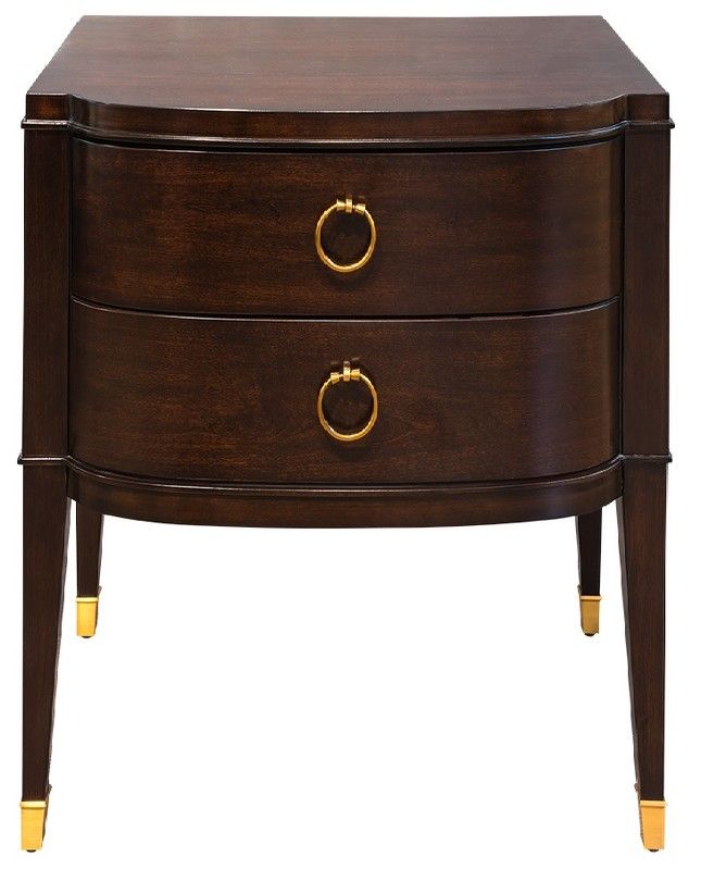Прикроватная тумбочка выполнена в стиле ар-деко. Оснащена 2 выдвижными ящиками.