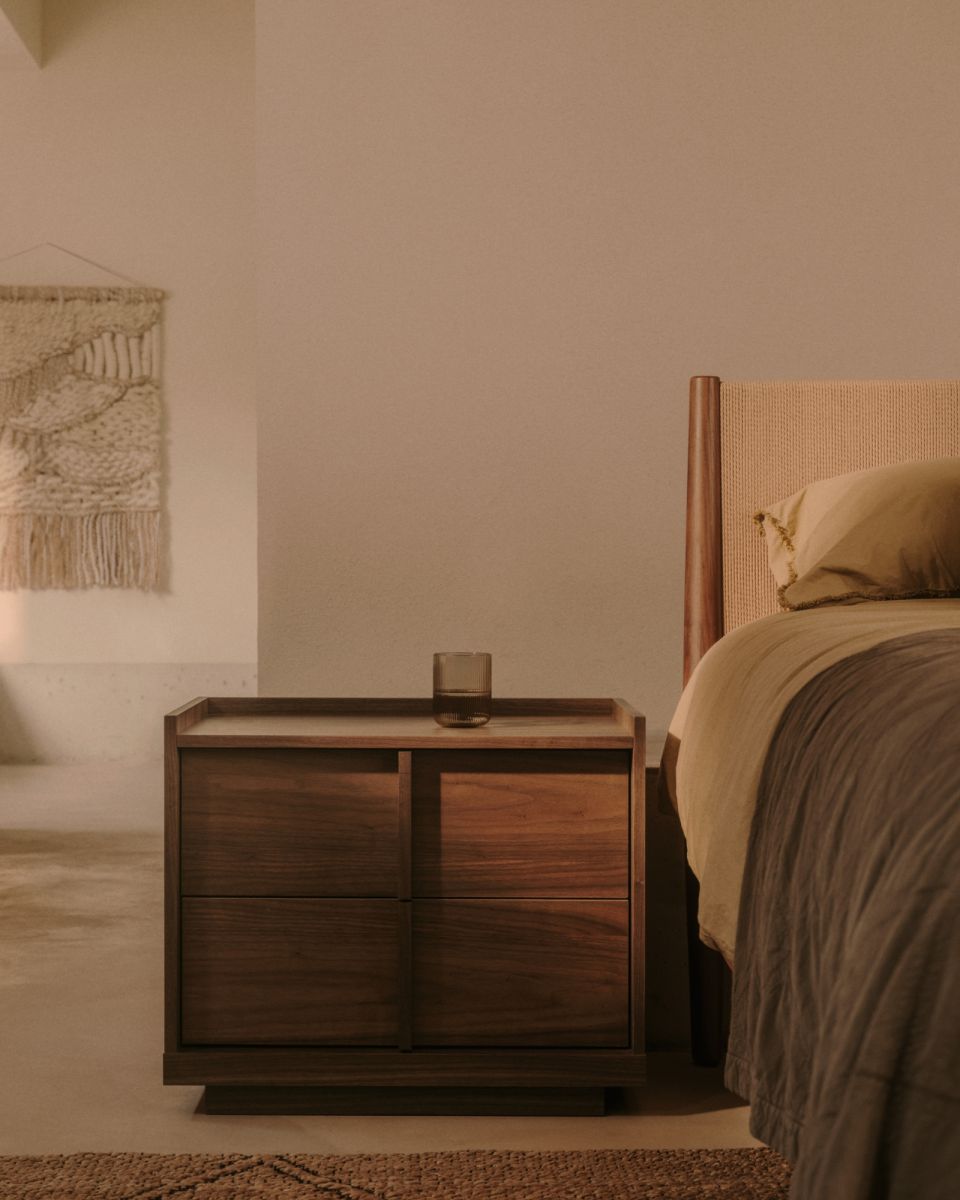 • Прикроватная тумбочка Onix 2 ящика шпон ореха в темной отделке 60 x 59 см - 4