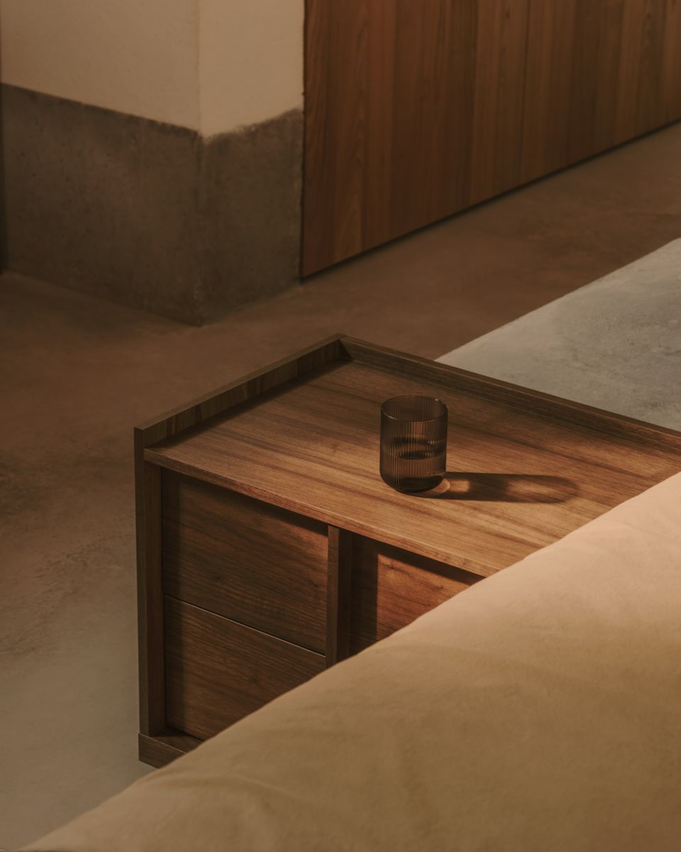 • Прикроватная тумбочка Onix 2 ящика шпон ореха в темной отделке 60 x 59 см - 7