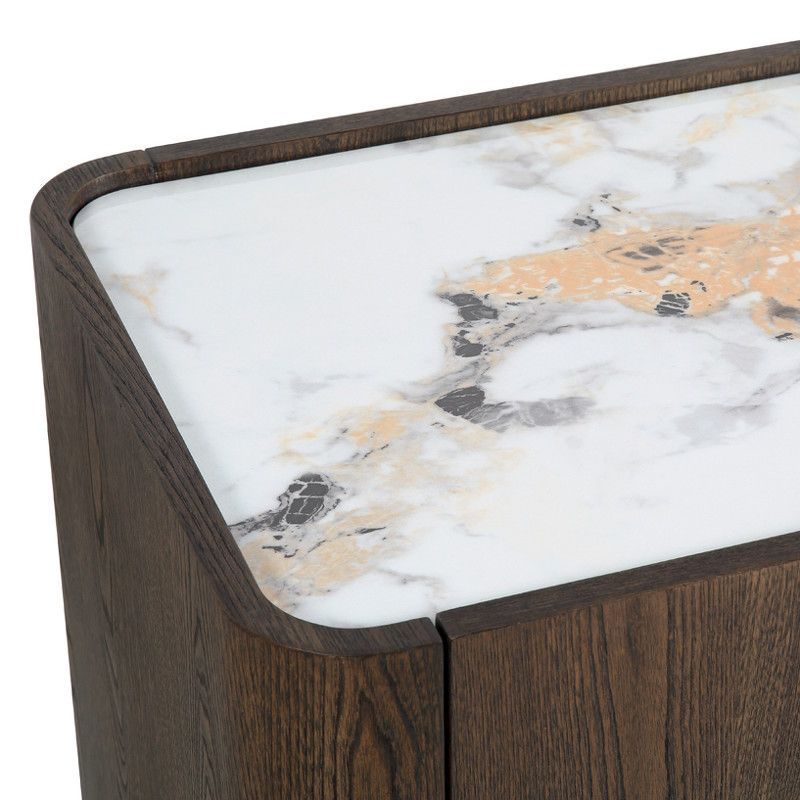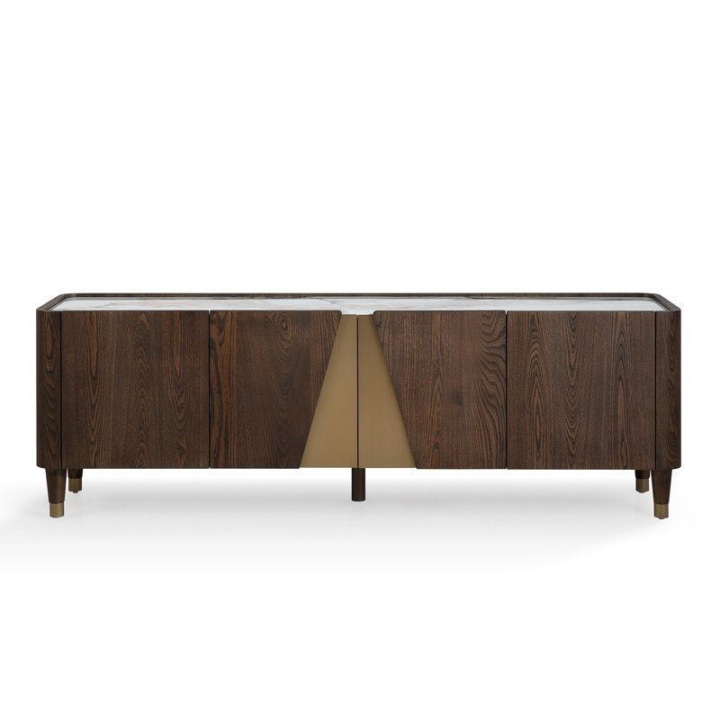 Тумба под TV от итальянского бренда Fratelli Barri, отлично впишется в современный интерьер. Оснащена четырьмя распашными дверцами. Тумба интересной закругленной формы, без острых углов, что делает ее атравматичной. Основная отделка корпуса - натуральный шпон вяза, столешница - керамика.