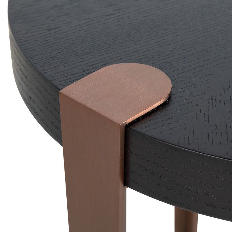 Приставной столик от итальянского бренда Fratelli Barri - элегантный и функциональный вариант для современной гостиной. Основание столика в цвете матовая бронза, дополнена контрастной темной столешницей.