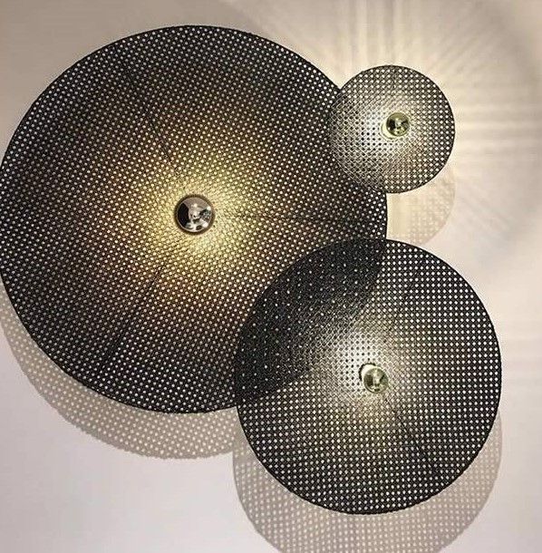 Настенное бра, выполненное из металла и ротанга в современном стиле. Состоит из металлического фиттинга размером 15 см черного цвета и рассеивающего диска из ротанга 90 см в черном цвете.