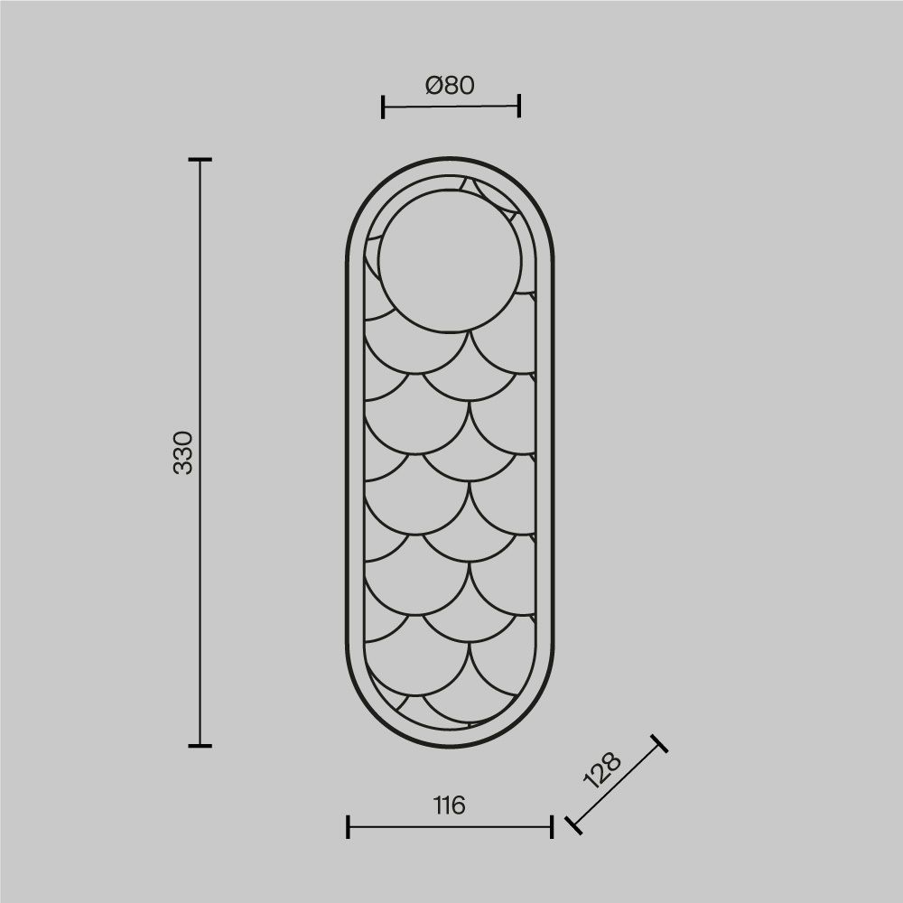 В серии представлены настенные светильники двух размеров и двух поколений. Декоративная мозаика из натурального перламутра играет нежнейшими бликами. Контраст текстур — переливы перламутра и матовая поверхность металла цвета латуни. LED-лента под акриловым рассеивателем создаёт ореол на стене. Предусмотрено трехступенчатое переключение температуры света через вкл-выкл (2700-3000-4000K), позволяющее создавать желаемую атмосферу. Эффектно светильники смотрятся и в комбинации друг с другом.