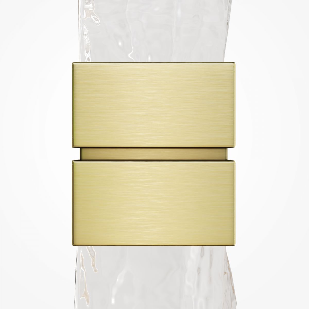 Дизайн серии воплощает хрупкую красоту и загадочное сияние арктических пейзажей. Трендовая массивная арматура выполнена из металла в цвете сатинированной латуни. Геометрический силуэт. Плафоны изготовлены из "мятого" стекла ручной работы, что обеспечивает уникальный световой рисунок на поверхностях. Встроенный LED-источник света с цветовой температурой 3000K создает теплое и уютное освещение. Светильник предназначен для интерьеров премиум-класса: спален, гостиных и офисов.