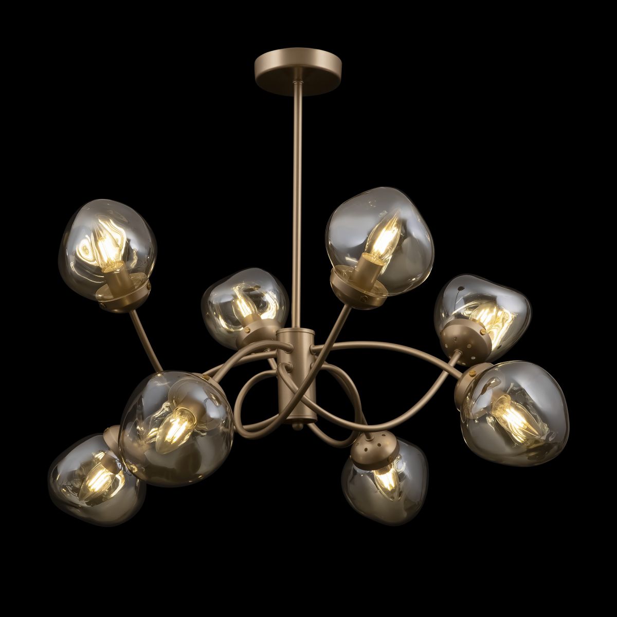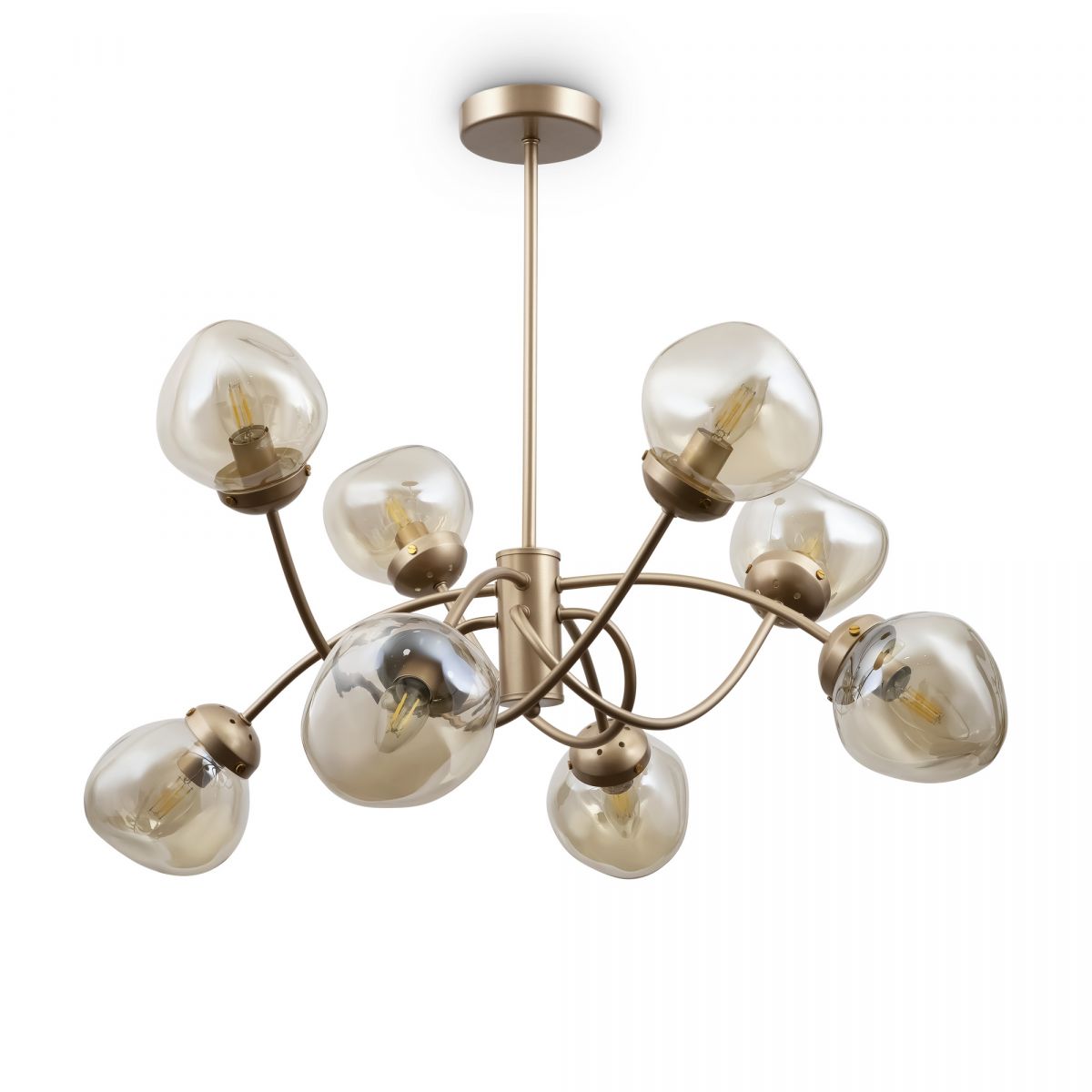 Динамика, скорость и ритм шумного мегаполиса отражены в сложных формах светильников Volani. Такой эффект достигается за счет конструктивных особенностей: рожки изогнуты под необычным углом, переплетаются друг с другом. Дизайнерское решение выгодно и с практической точки зрения: разнонаправленный световой поток обеспечивает равномерное и яркое освещение. Арматура из металла цвета матового золота идеально гармонирует с янтарными стеклянными плафонами. Теплая цветовая гамма добавит интерьеру уюта.