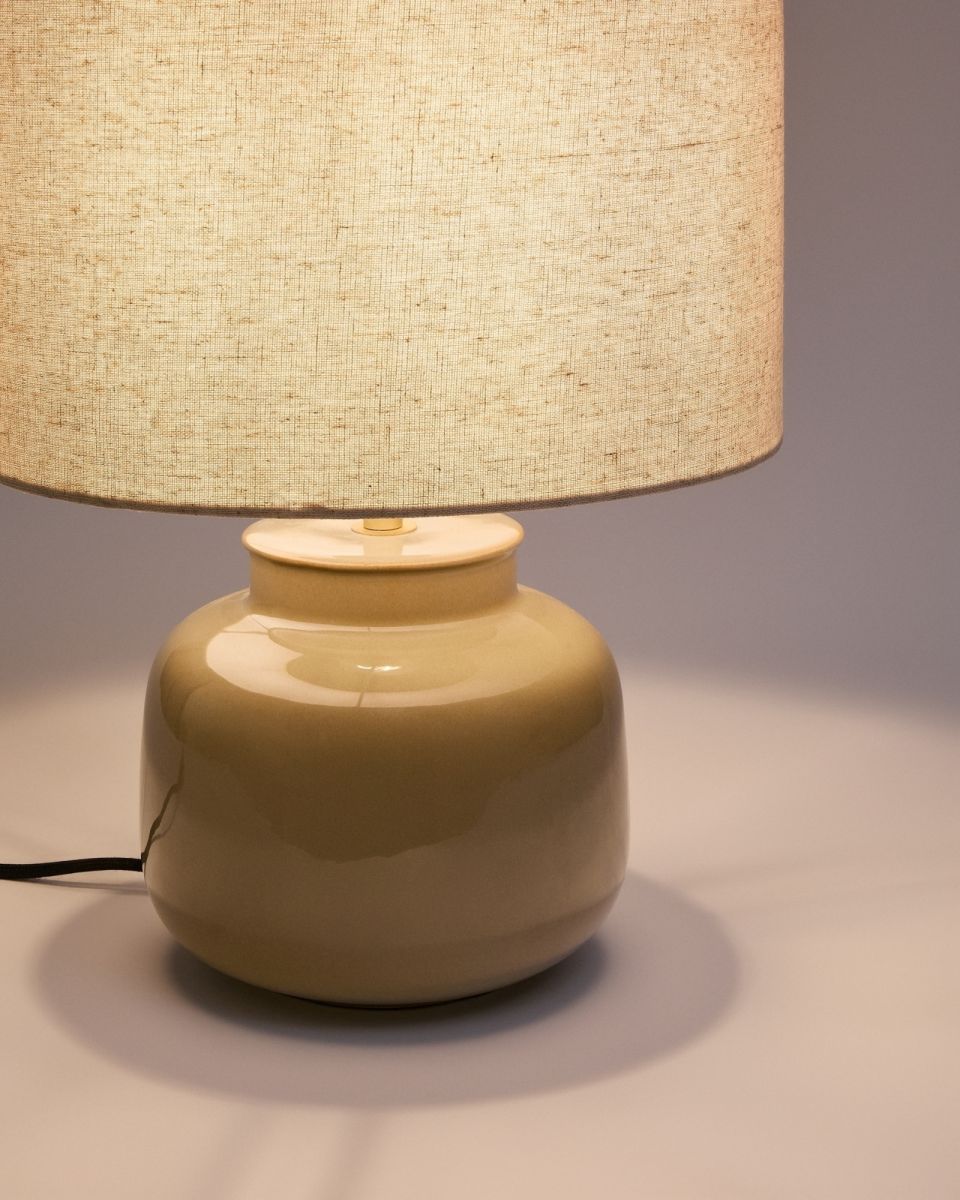 • Керамическая настольная лампа Tay зеленая - бежевый лен - 5