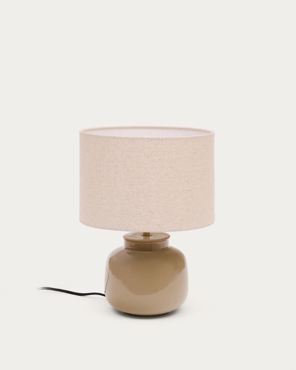 Керамическая настольная лампа Tay зеленая - бежевый лен