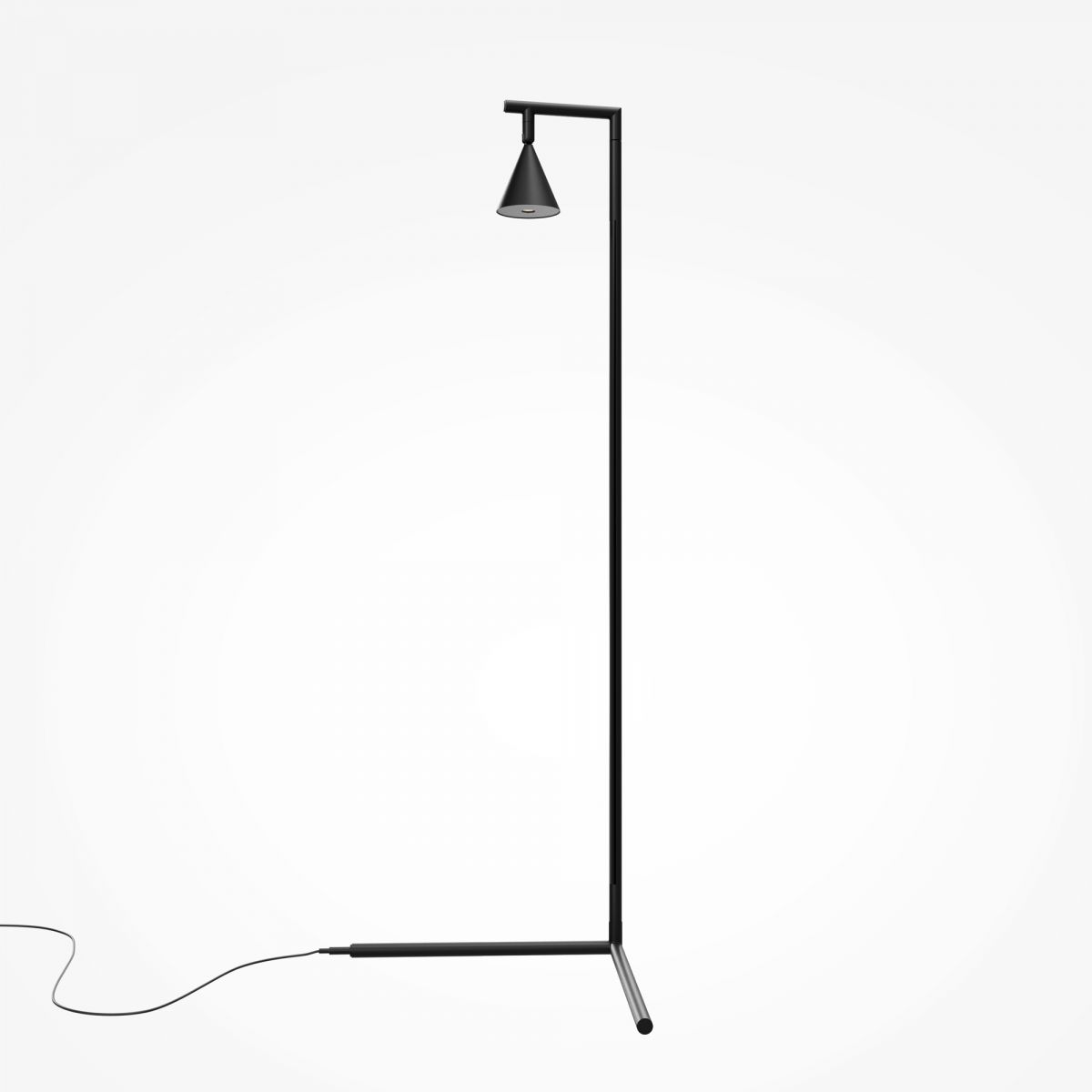 Напольный торшер с двумя источниками света. Основной элемент — черный матовый вертикальный рассеиватель со скрытой лентой для переотраженного освещения. Поворотный спот с направленным светом (угол 36°) для точечного освещения. Оба элемента вращаются вокруг оси на 360°. LED-источники с температурой 3000K и высоким индексом цветопередачи CRI 90. Функция диммирования. Корпус из алюминия с черным антибликовым покрытием. Для современных интерьеров, обеспечивает как общее, так и акцентное освещение.