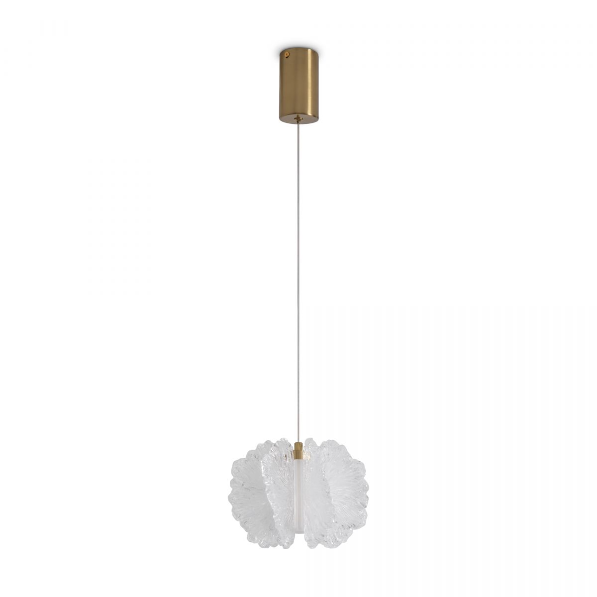 Подвесные светильники Flower: воздушные акриловые плафоны на металле. Встроенные LED (2700K), угол рассеивания 120°. Высота 1200 мм. Два варианта подвесов: каскадный и одинарный.