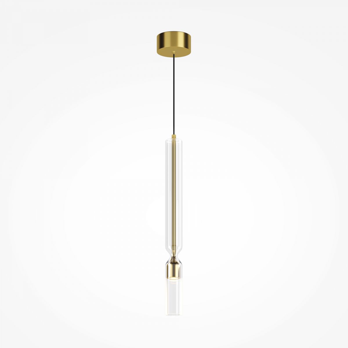 Серия миниатюрных подвесных светильников включает модели с алюминиевой арматурой черного цвета и цвета сатинированной латуни. Плафоны выполнены из стекла в форме колбочки. Встроенный LED-источник света с цветовой температурой 3000K. Угол рассеивания 120 градусов, индекс цветопередачи CRI 80. Высота плафонов 400 мм, диаметр 40 мм, высота подвеса регулируется до 3435 мм. Предназначены для акцентного освещения и зонирования пространства. Подходят для использования в спальнях, детских, гостиных и ст