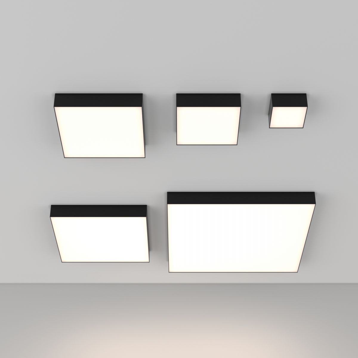 Материал корпуса – металл; цвета – чёрный, белый и золотой. Формы корпуса: круглая и квадратная. Типы монтажа: накладной, подвесной, а также трековые светильники. Подвесной монтаж универсален для обеих форм. Монтаж без видимых болтов. Варианты мощностей: 12W, 24W, 36W, 45W и 90W. LED-источник света. Цветовая температура – 3000 или 4000К. Высокий коэффициент цветопередачи. Совместимость с драйверами DALI и Triac для изменения цветовой температуры и диммирования. Аксессуар для монтажа круглых моде