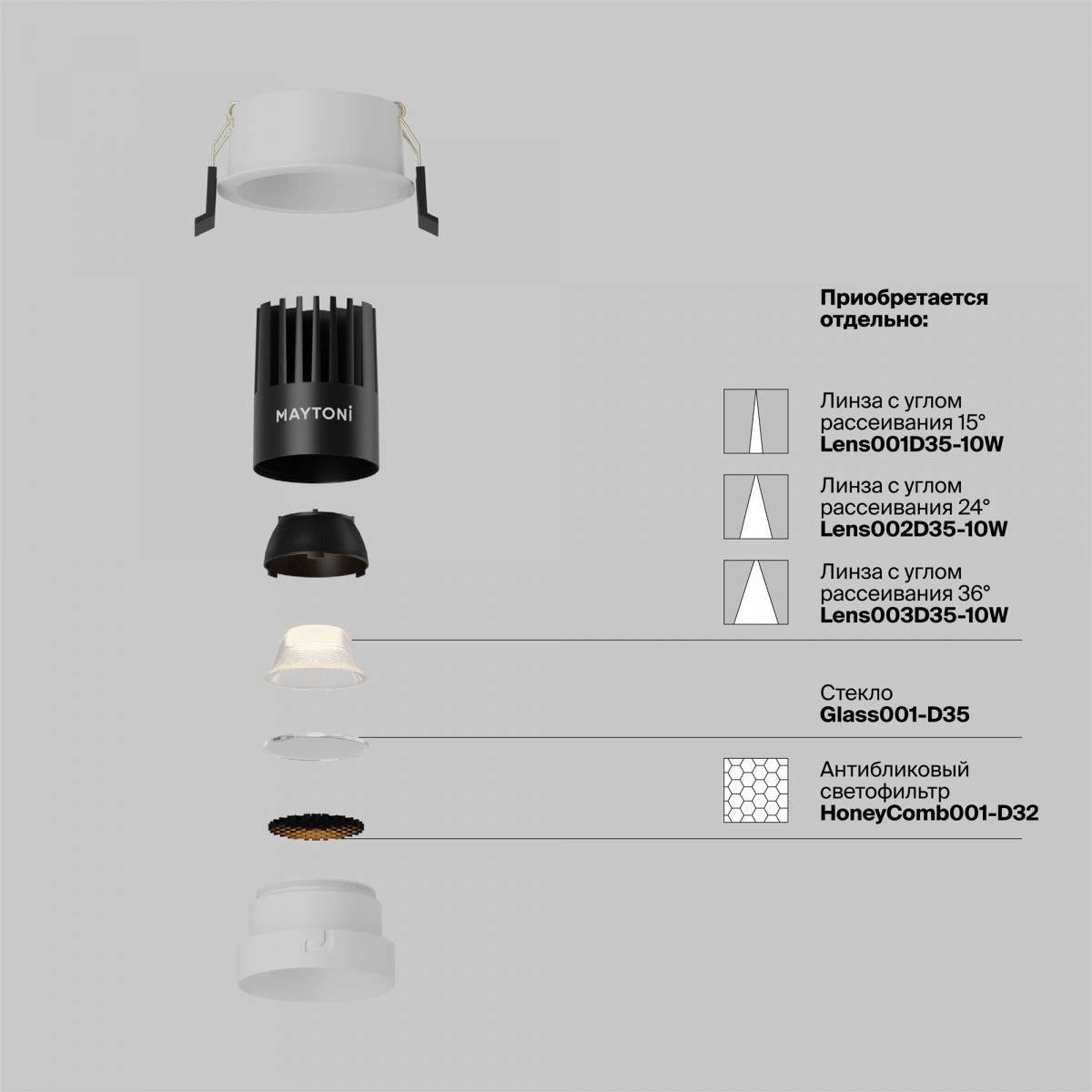 Инновационная серия встраиваемых светильников. Материал корпуса - металл, цвета - белый и черный. Скрытый источник света с утопленной оптикойна 2,5 и 4 см. Два варианта цветовой температуры: теплый (2700K) и нейтральный (4000K). Мощность 10 и 15Вт. Антибликовый фильтр и сменные линзы с углами 36°, 24° и 15°. В ассортименте представлено защитное стекло, для увеличения степени защиты от пыли и влаги до IP44. Совместимость с источниками питания Dali и Triac. Организация акцентного и основного освещ