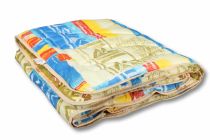 одеяло с наполнителем из овечьей шерсти 300 г/кв.м, чехол -ПЭ, кант, бирка, постер, в чемодане