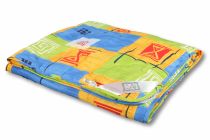 одеяло с наполнителем - "Холфит-пласт" (полое силиконизированное волокно 400 г/кв.м), чехол - ткань смесовая (поликоттон; 70% - хлопок/30% - полиэстер; 120 г/кв.м) , кант, уголок, бирка, постер, в чемодане